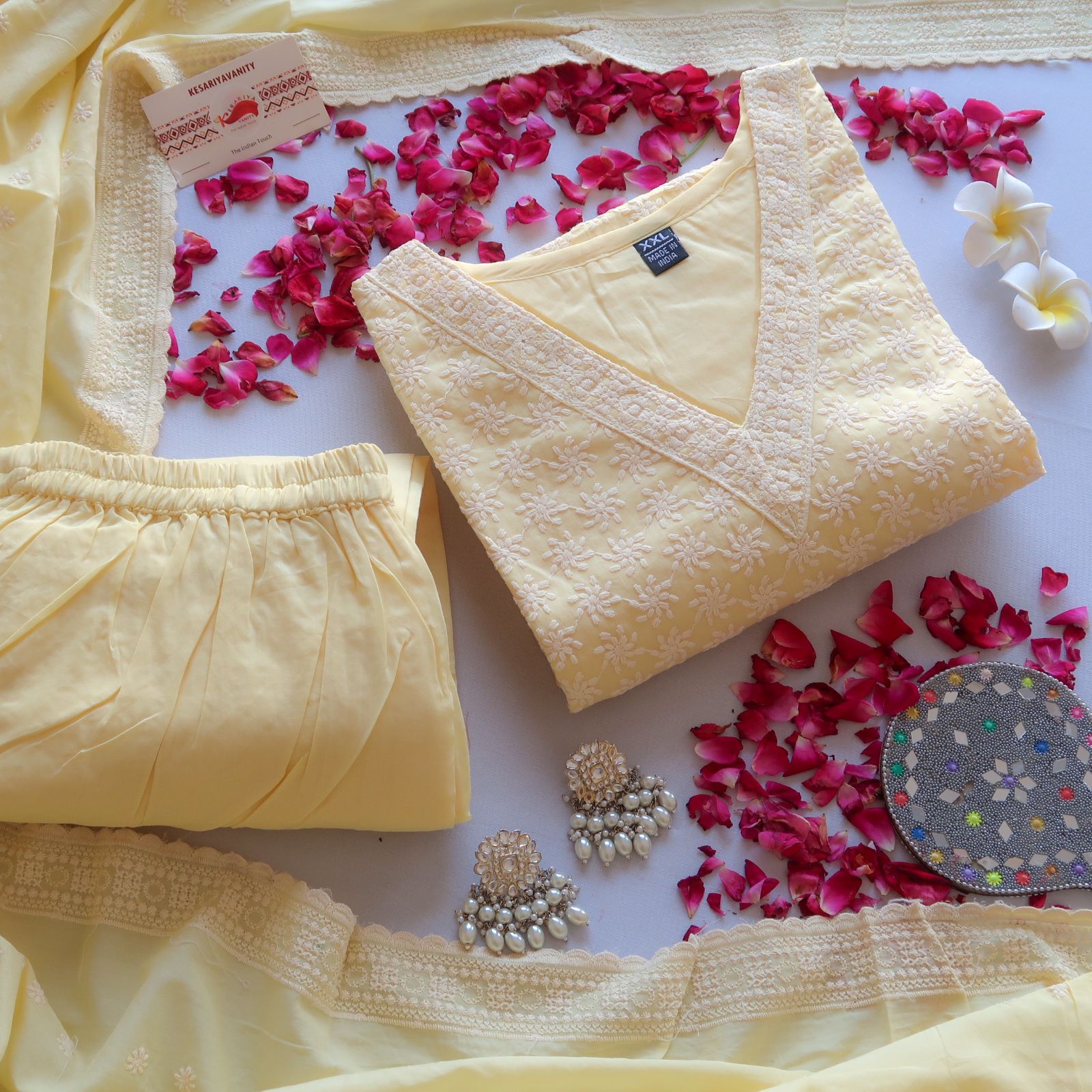 Introducing our Premium Three-Piece "Lemon Glow Suit Set," an elegant and refined ensemble perfect for any festive or special occasion. The kurta, in a soft pastel yellow shade, is adorned with intricate machine embroidery throughout, adding a delicate yet eye-catching detail. Paired with matching pastel yellow plain pants, this suit set offers both comfort and grace.