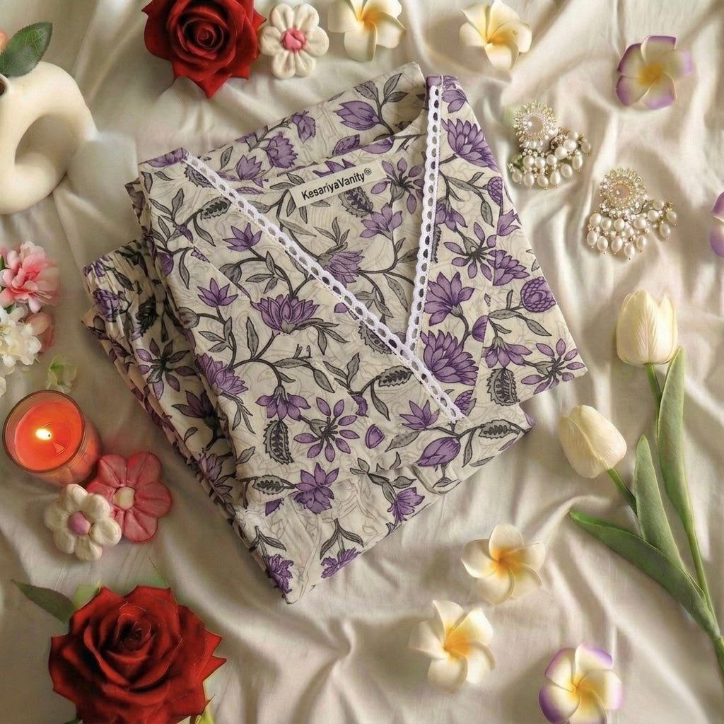 The kurta, tailored in a classic straight style. Each bloom is intricately printed, creating a mesmerizing tapestry of color and texture reminiscent of a majestic garden in full bloom.
